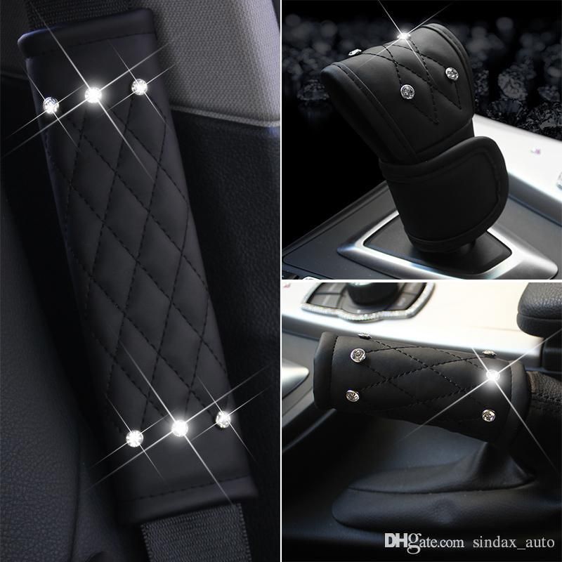 Ladycrastal Luxury Diamond Auto Seat Belt Cover Hand Brake Gear