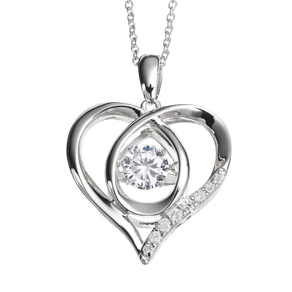 Dancing Diamond Sterling Silver Heart Pendant Necklace 1 10cttw Jk Color I2 I3 Clarity 18