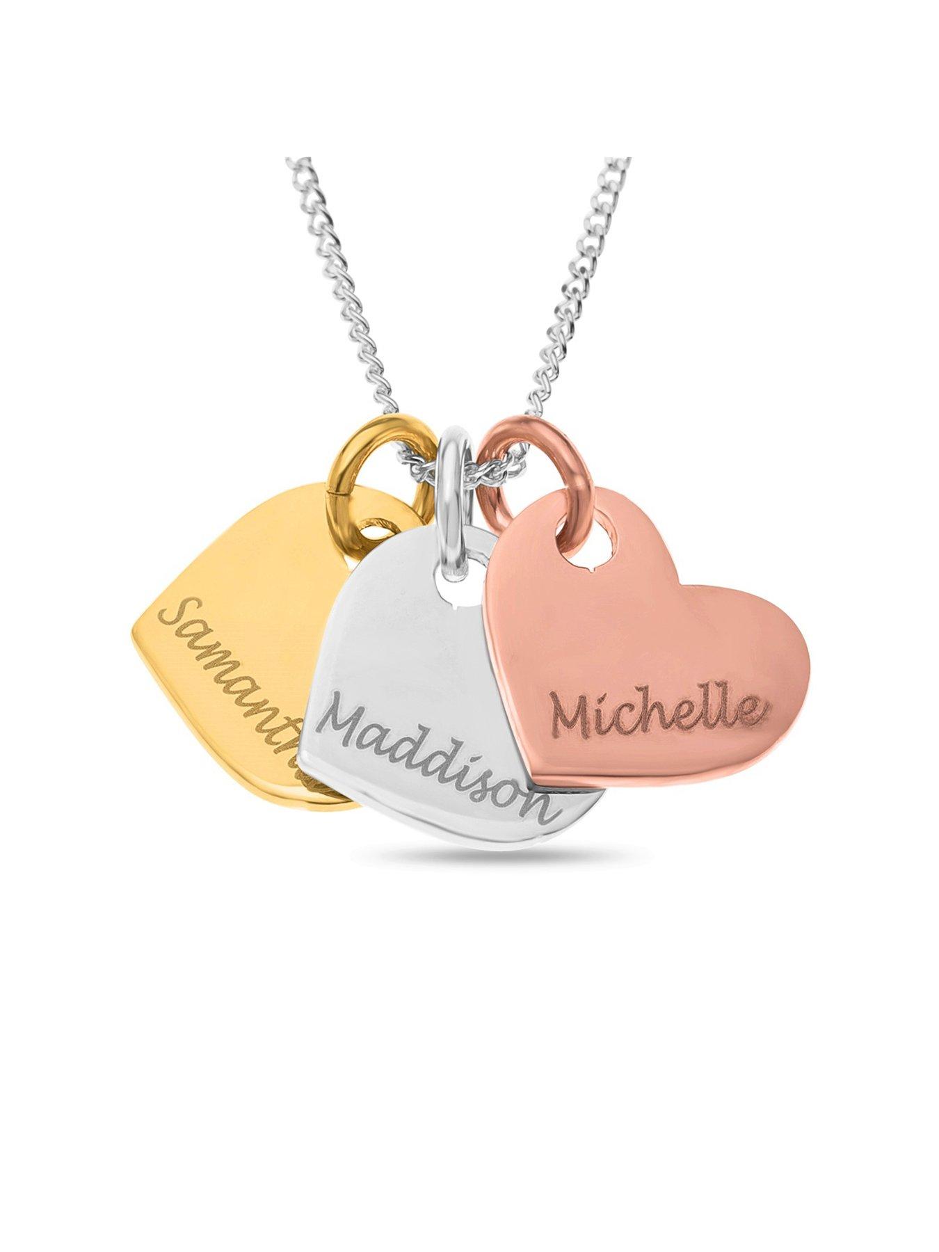 Personalised Gold Plated Sterling Silver Tri Colour Hearts Pendant Necklace