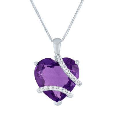 Womens Lab Created Purple Amethyst Sterling Silver Heart Pendant Necklace