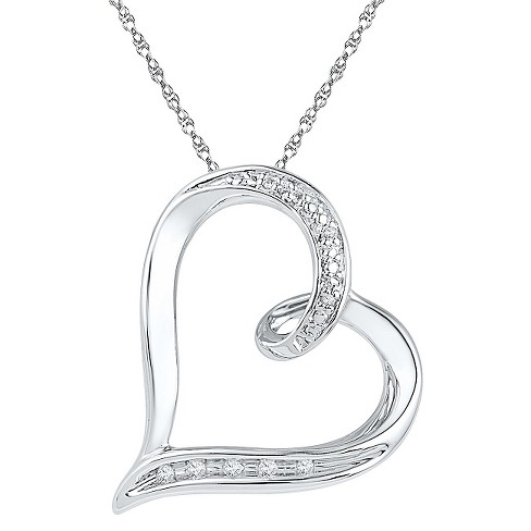 1 10 Ct T W Diamond Heart Pendant Necklace Sterling Silver