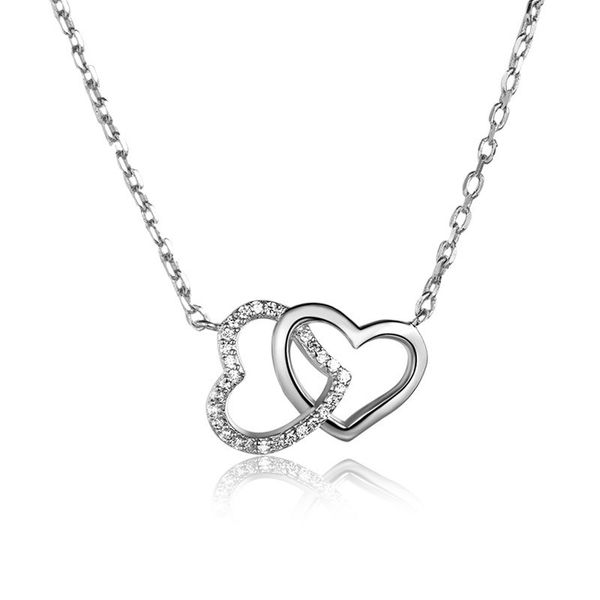 Google Chicute Sterling Silver Double Love Open Heart Pendant Necklace Paved Cubic Zirconia Cz And 18 Inch Chain Women Jewelry