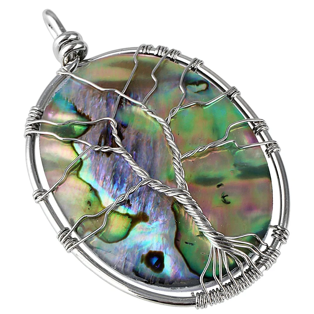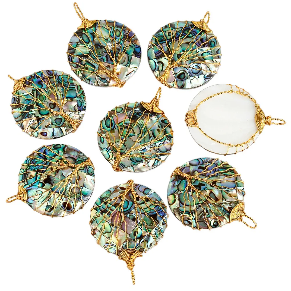 Us 4 55 20 Off Tumbeelluwa Abalone Shell Round Tree Of Life Pendant Wire Wrapped Jewelry Fit Necklace In Pendants From Jewelry Accessories On