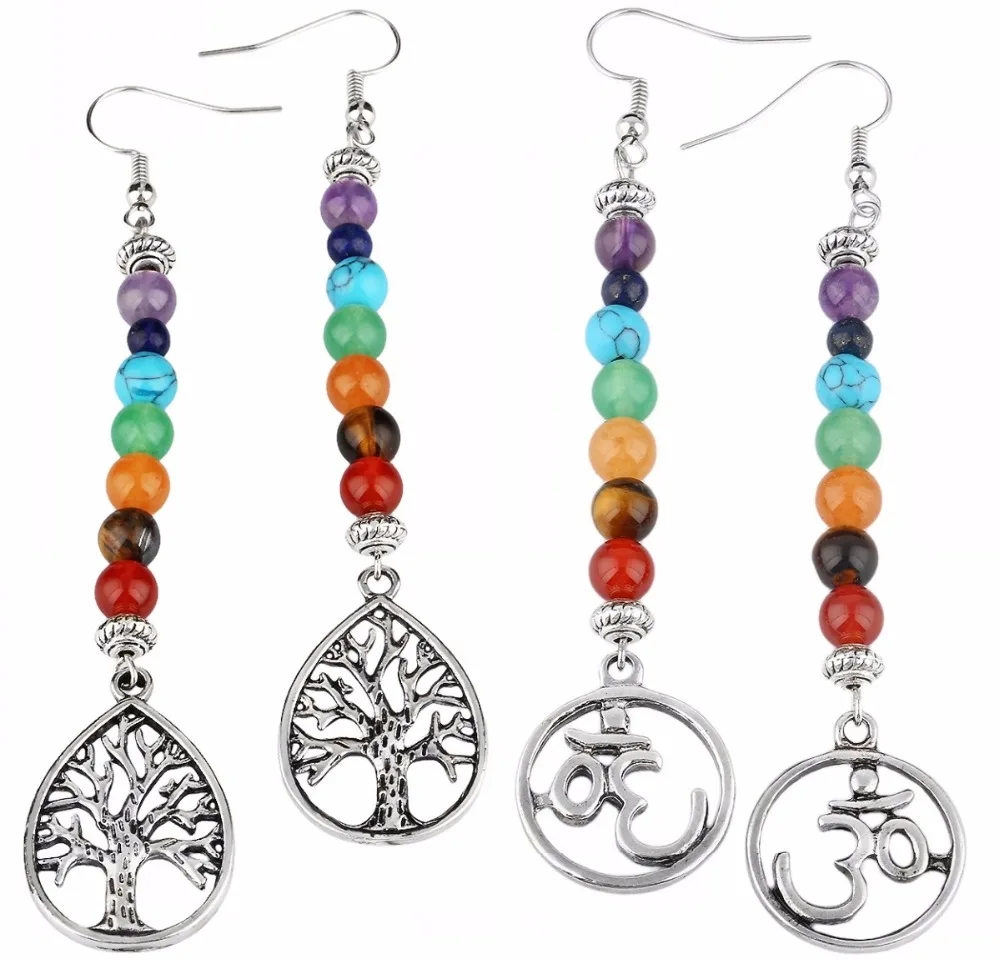 Us 3 79 5 Off Tumbeelluwa 7 Chakra Stone Dangle Earrings For Women Tree Of Life Root Chakra In Drop Earrings From Jewelry Accessories On