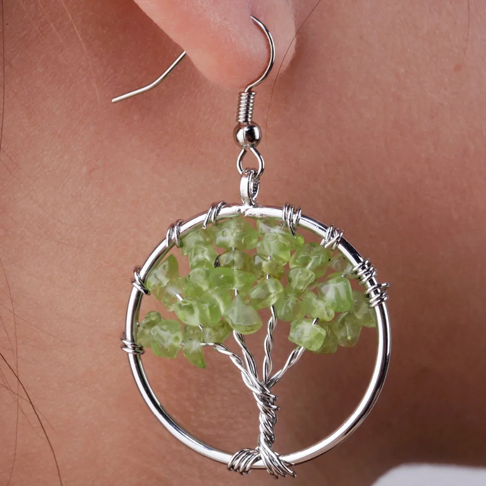 Us 3 79 5 Off Tumbeelluwa Green Peridot Chips Stones Tree Of Life Dangle Hook Earrings Handmade Wire Wrapped Jewelry For Women In Drop Earrings From