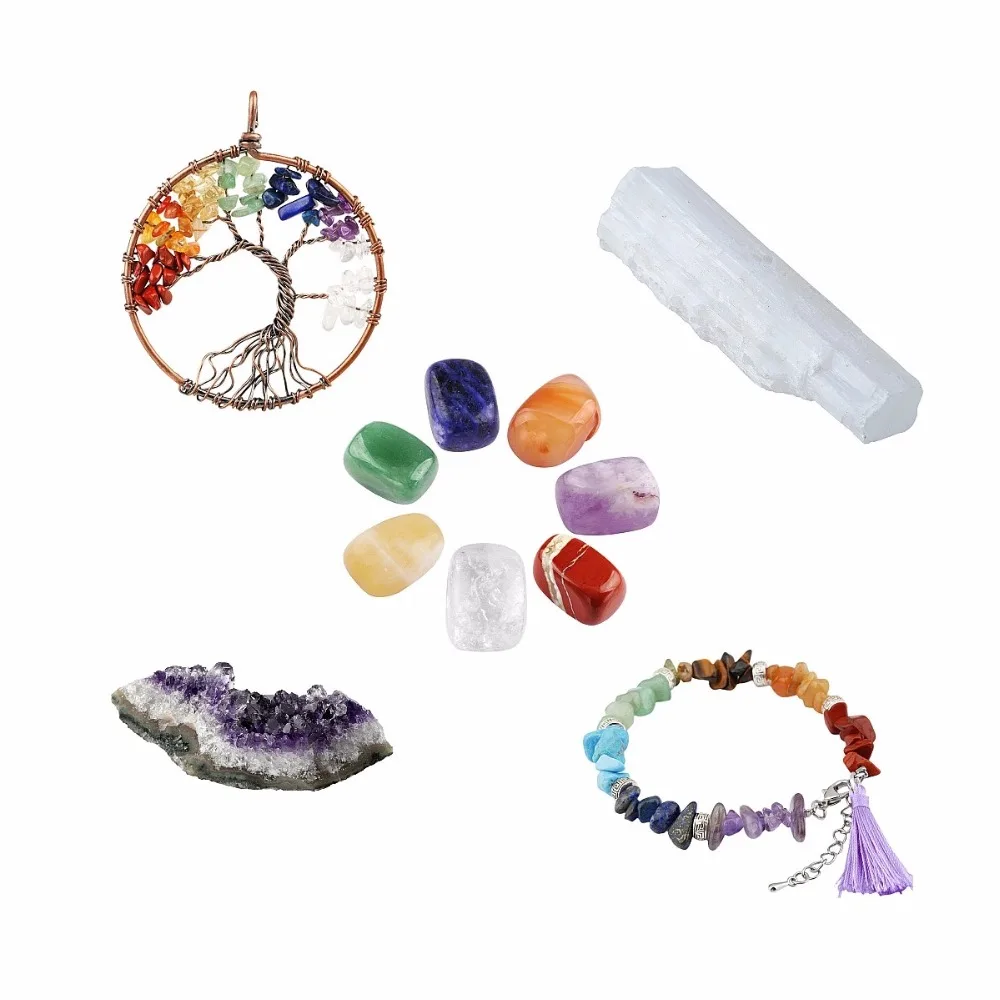 Us 15 29 15 Off Tumbeelluwa Healing Crystal Kit 7 Chakra Palm Stones Amethyst Cluster Selenite Stick Tree Of Life Pendant Bracelet Balancing Set In