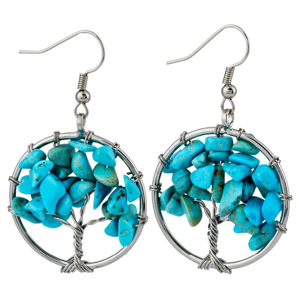 Us 3 99 Tumbeelluwa Blue Howlite Chips Stones Tree Of Life Dangle Hook Earrings Handmade Wire Wrapped Jewelry For Women In Drop Earrings From