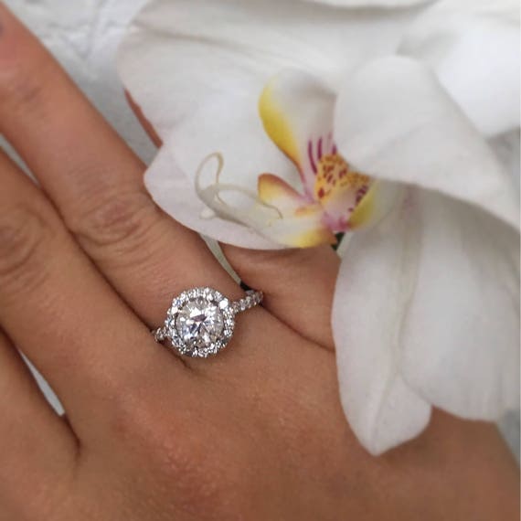 1 5 Carat Oval Moissanite Engagement Rings Diamond 14k Rose Gold Halo Thin Design Stacking Band
