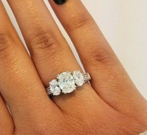Details About 3 Stone Oval Diamond Engagement Wedding Ring 14k Solid White Gold 2 Ct