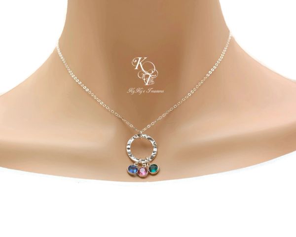 Silver Hammered Washer Mothers Necklace With Birthstones