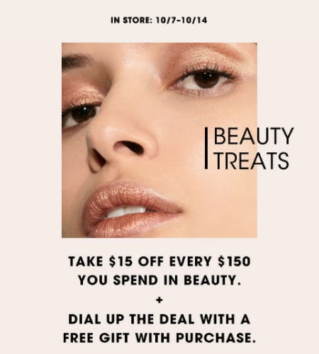 Online now and starting in store on monday through october 14 you will get 15 off every 150 you spend on beauty.