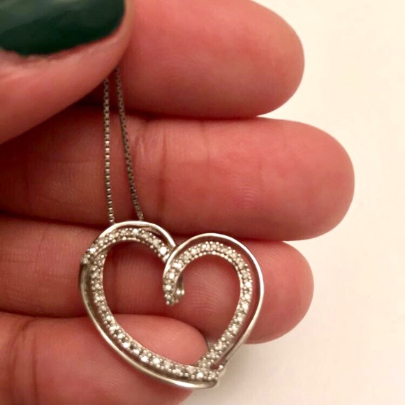 White Silver Diamond Heart Pendant 925 Sterling 0 005 Ct Diamond Necklace 68 Off Retail