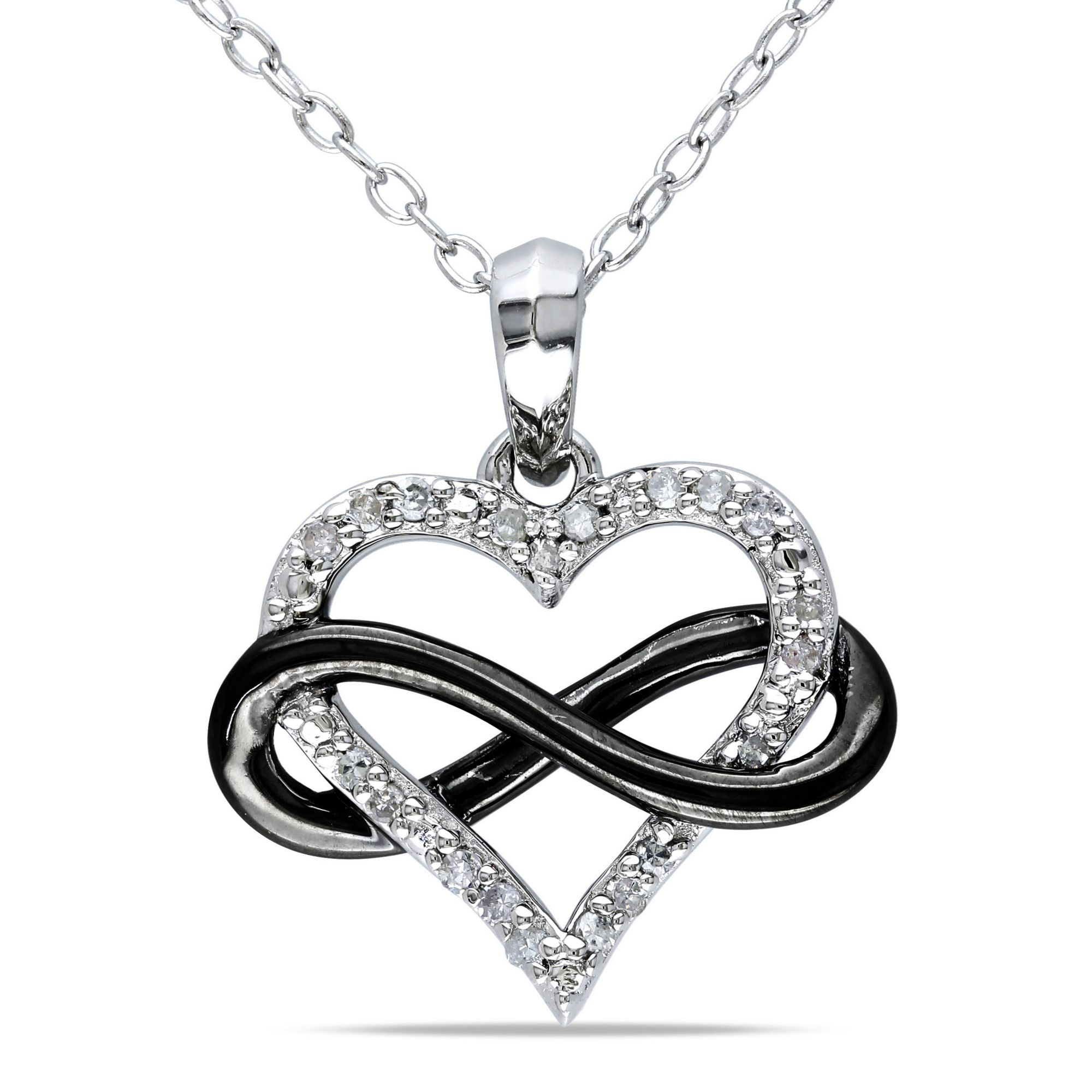 Sterling Silver 03 Ct Shimmering Diamond Heart Infinity Necklace