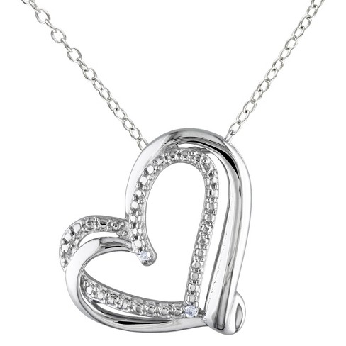 Sterling silver diamond heart pendant necklace. Sterling silver and 14k yellow gold created ruby heart and diamond accent pendant necklace 006 cttw i j color i2 i3 clarity 18 42 out of 5 stars 299 7900. Sterling silver necklace featuring pendant with two interlocking open hearts one in polished finish and one encrusted with diamonds 18 rolo chain with lobster claw clasp all our diamond suppliers confirm that they comply with the kimberley process to ensure that their diamonds are conflict free. Not too big and not too showy this glistening diamond accented heart pendant is a meaningful gift of romantic love.