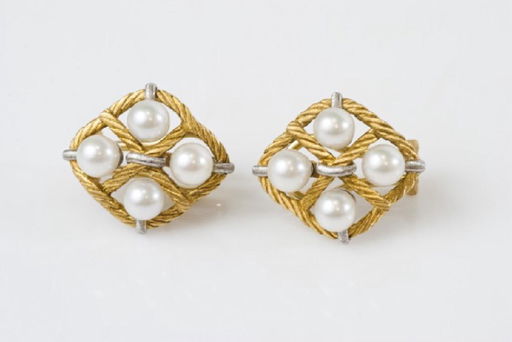 Estate Mario Buccellati 18kt Gold Pearl Earrings