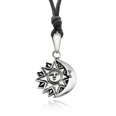 Sun And Moon Size M 92 5 Sterling Silver Charm Necklace Pendant Jewelry With Cotton Cord