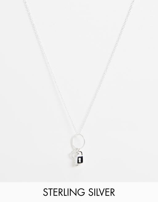 Asos Design Sterling Silver Necklace With Padlock And Key Pendants
