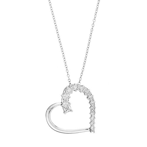 Sterling Silver 1 10 Carat T W Diamond Heart Pendant Necklace