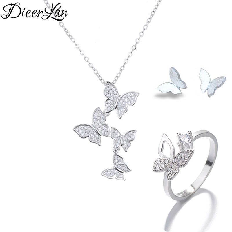 2019 925 Sterling Silver Long Butterfly Necklaces Pendant Butterfly Earrings Rings Jewelry Sets For Women Sterling Silver Jewelry From Heathere