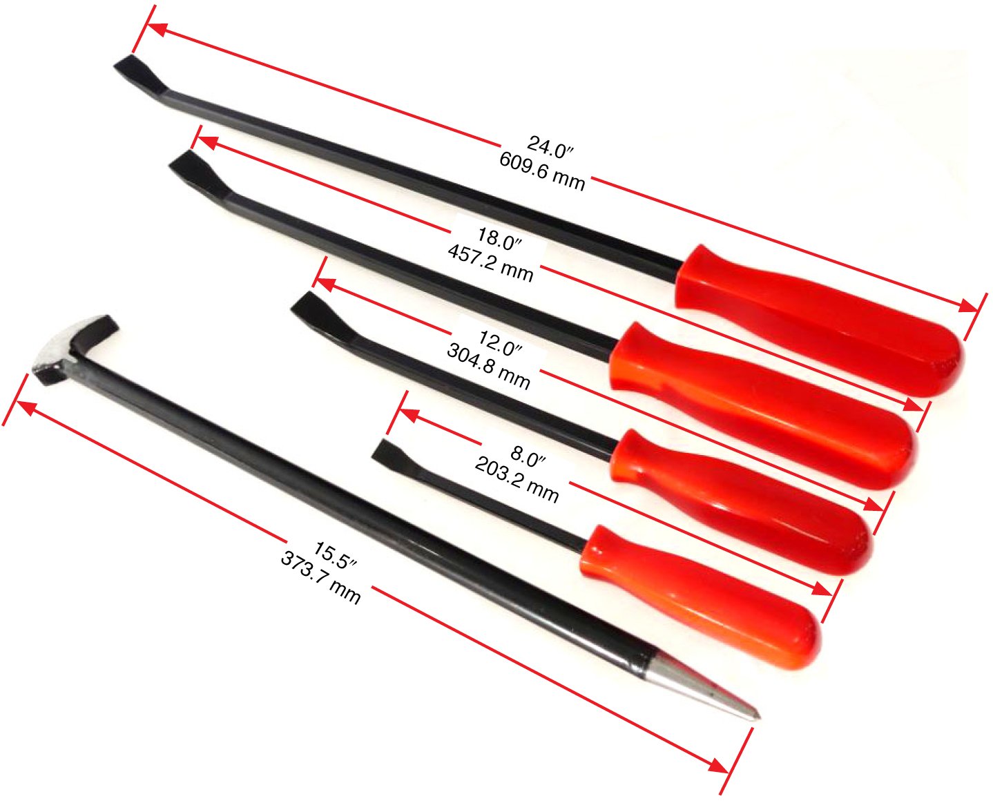 Tech 5 Piece Pry Bar Set Mechanic S Prybars Chisel Tip Angled Rolling Head Carbon Steel Hand Tools