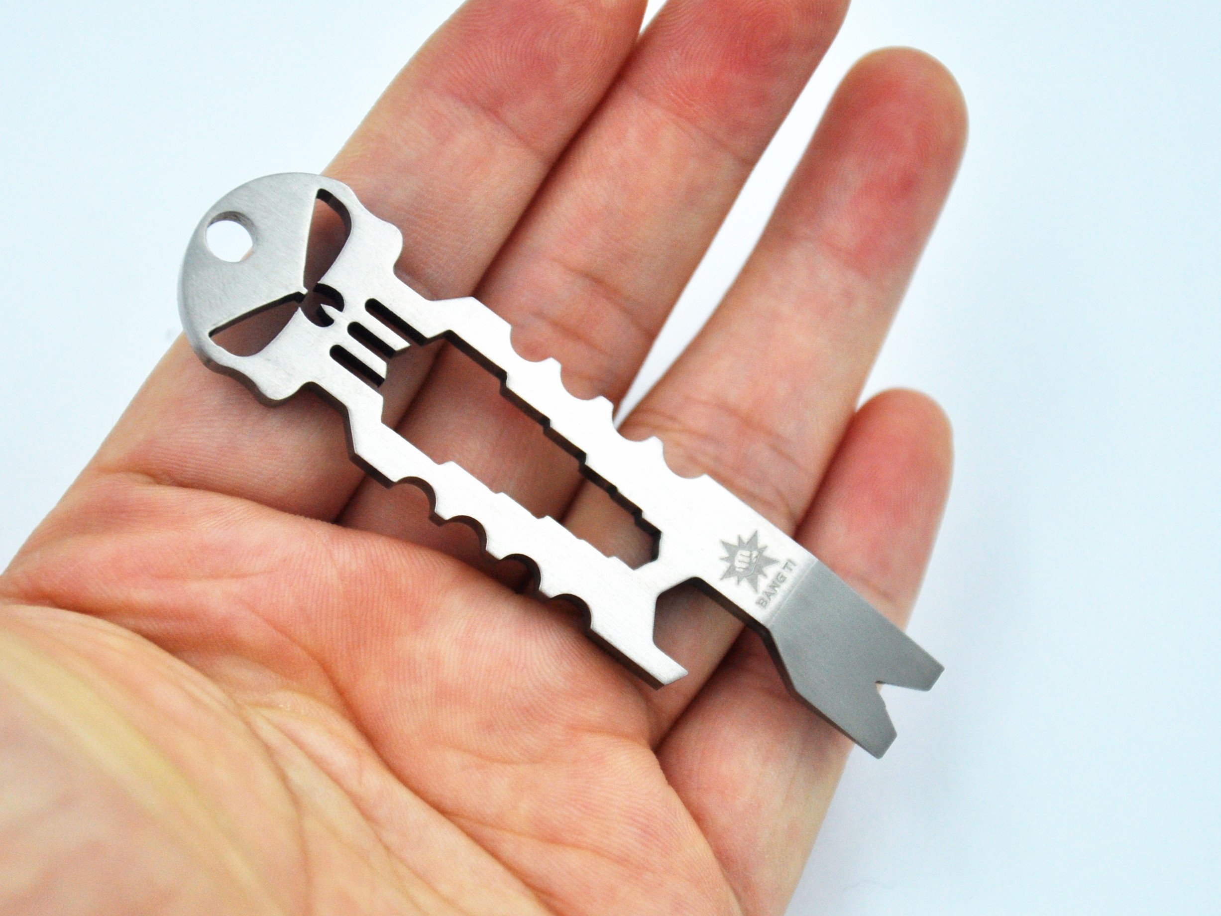 Stainless Steel Survival Minimalist Multi Tool Punisher Skull Edc Keychain Pry Bar Bottle Opener Hex Tool